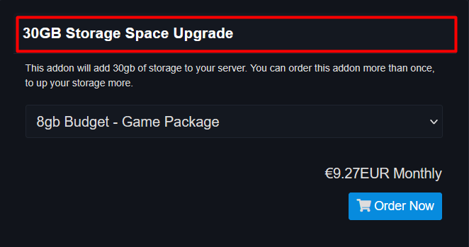 You can now click on the Order Now button to purchase more storage for your Kinetic Hosting Game Server.
