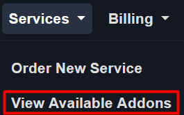 On the Top Menu Bar, Click on Services then View Available Addons.