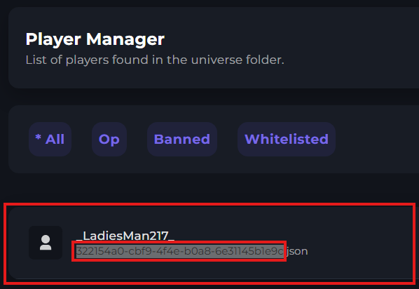 You'll now see the list of players on your server. Under their username, you'll see their UUID. You can copy this.