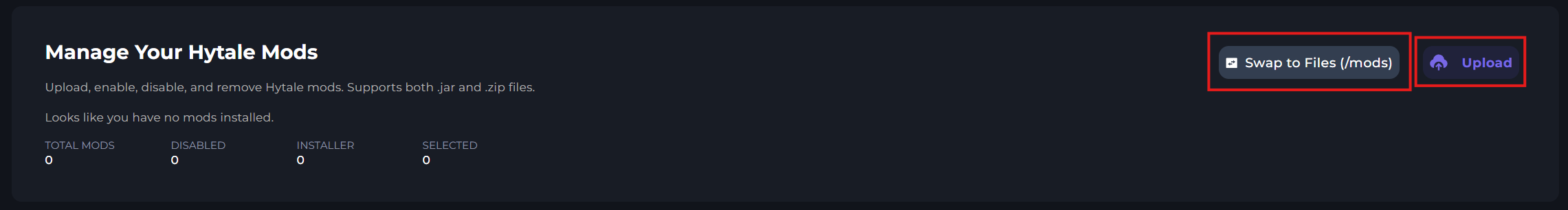 There are two ways you can install mods to your Hytale server. Uploading them via the files manager, or using the Kinetic Panels mod installer.