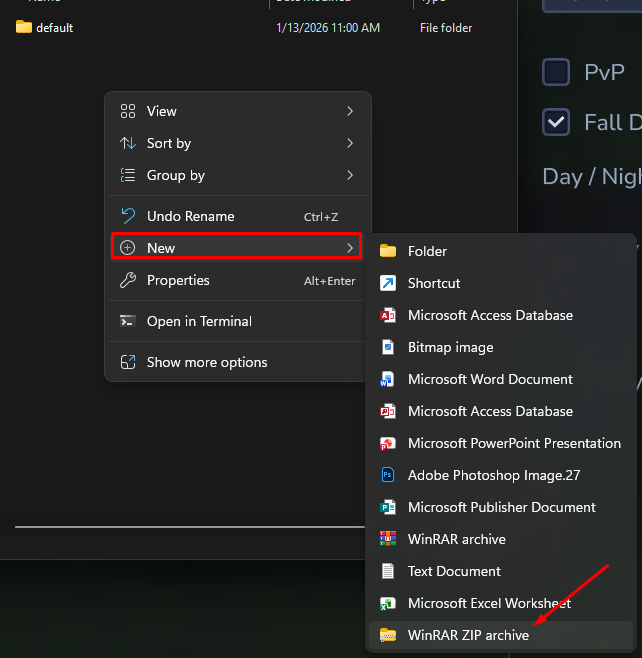 You will then want to make a new zipped Archive, then drag & drop the default folder inside of the archive.