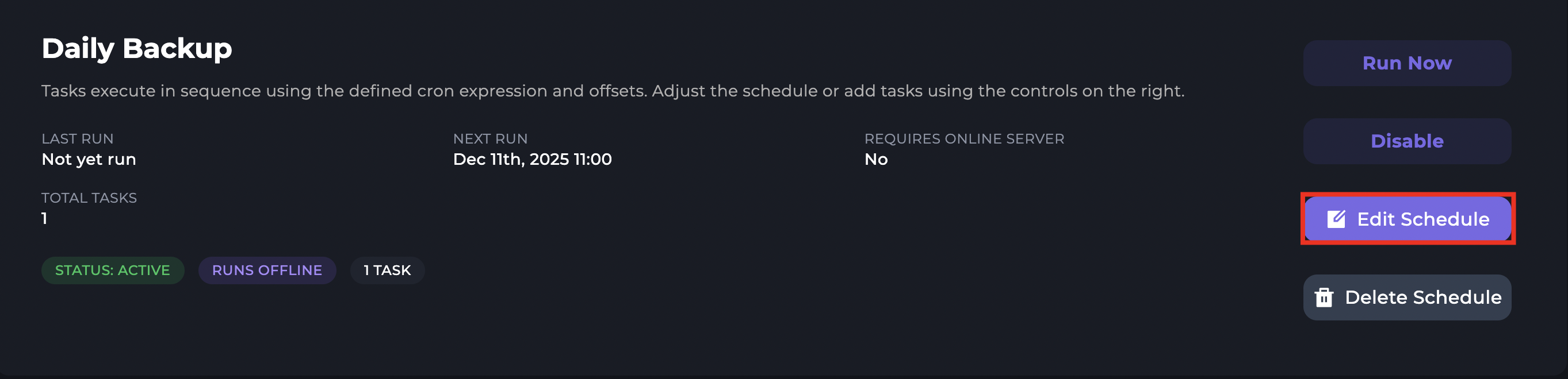 If you want to edit the time a schedule is ran, you can click on the Edit Schedule Button.