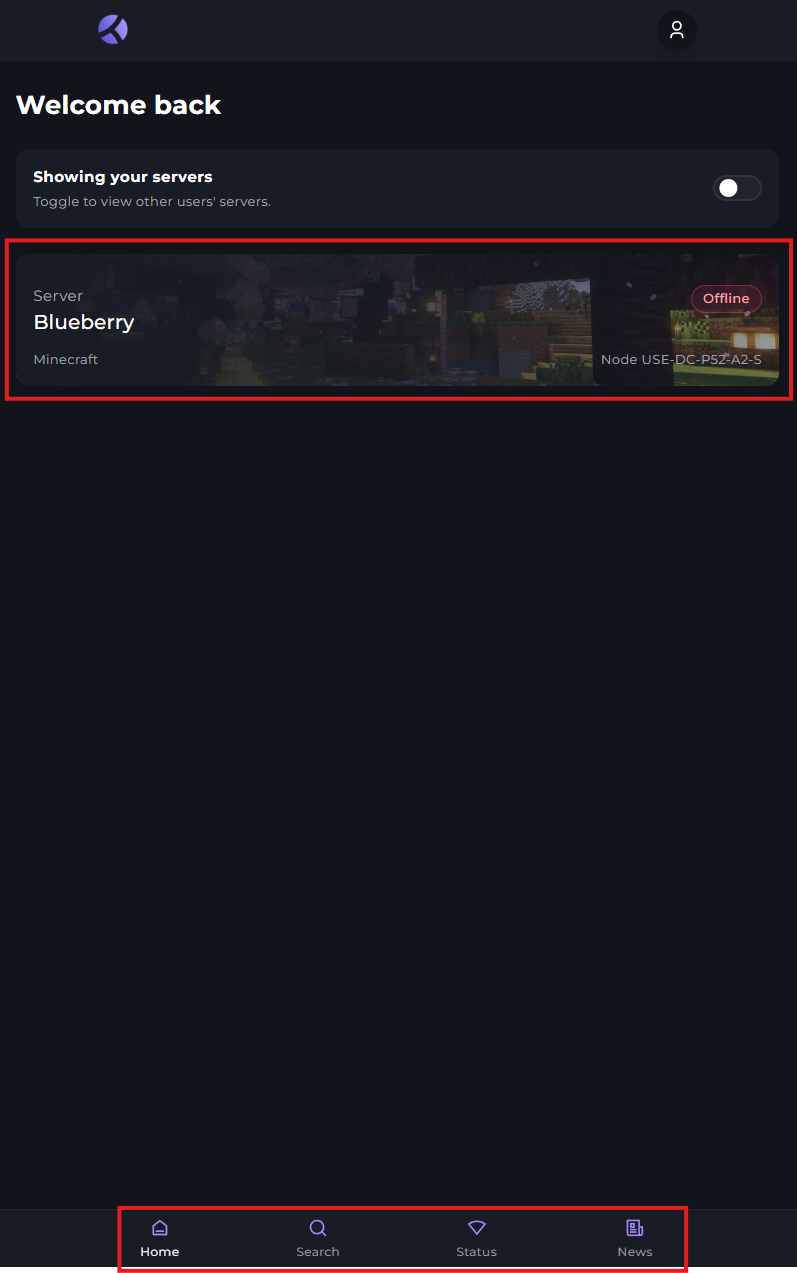 This menu allows you to view your other servers, so that you can select between them.