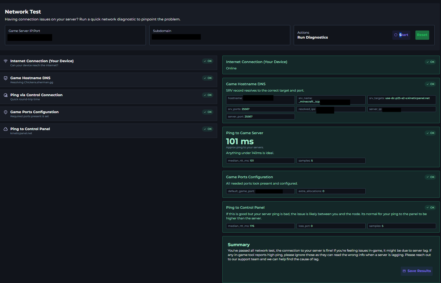 Once the Network Test has finished, click Save Results. This will allow support to view your diagnostics.