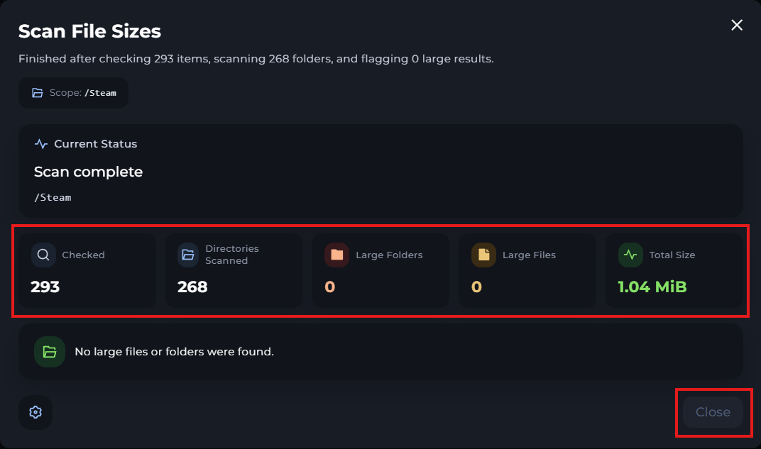 Once the scan is complete, you'll be provided with all the file size information.
