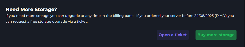 You can also order more storage. This will direct you to the billing panel. If you are on an older package, open a ticket to increase your storage.
