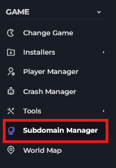 2 Head to the Game category on the left hand side & click on Subdomain Manager.