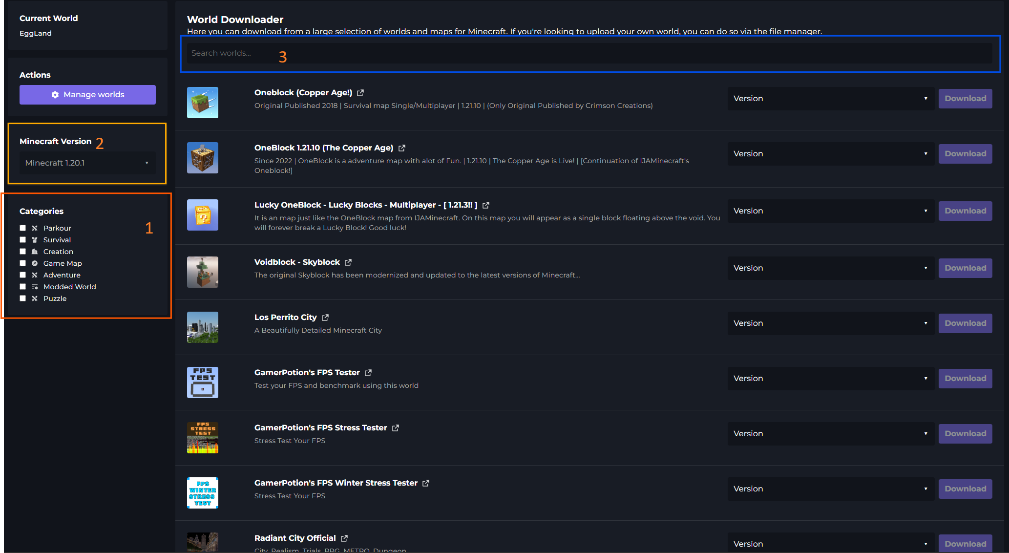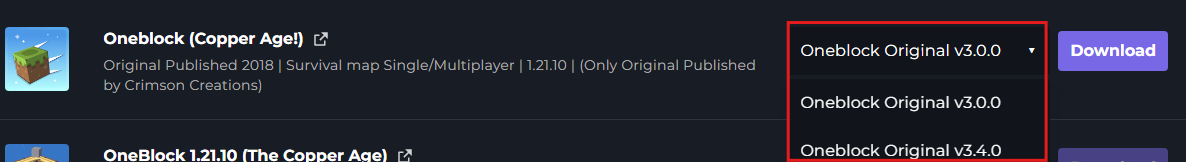 Once you have found a World, select the version from the drop-down.