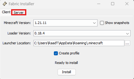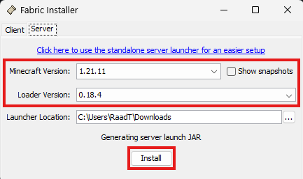 Once you have the Fabric Installer software, you'll need to follow these steps to download the Fabric jar file for your server.