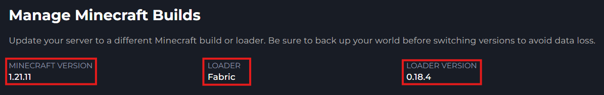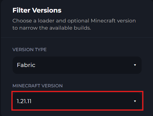 Once you've selected Fabric, you'll need to select what version of Minecraft you'd like to have on your server. In this case, we'll be selecting Minecraft 1.21.11.