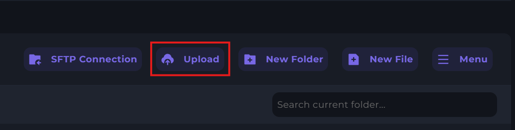 In the File Manager, you can either drag and drop the Fabric jar file you created into the main directory, or, you can click the "Upload" button on the top right, and select the file there.