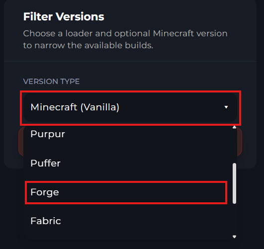 3 You click on the Vanilla Drop-Down menu and select Forge.