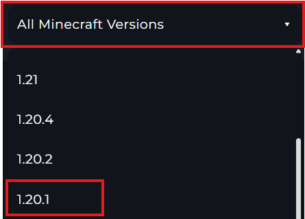 4 Now, you will select the Minecraft Version. For the purpose of the guide, we'll be choosing 1.20.1.