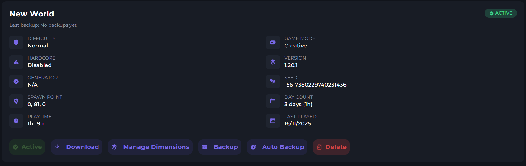 Once the world is uploaded, you'll see all of the worlds properties.