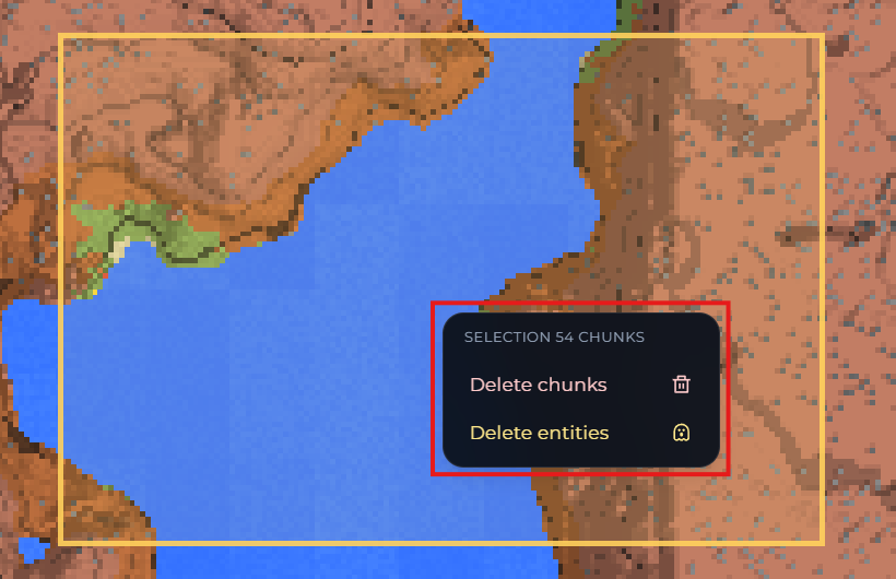 If you then right click the selected chunks, you can choose to delete the chunks so they can reload on the next server boot, or delete the entities within the chunk.