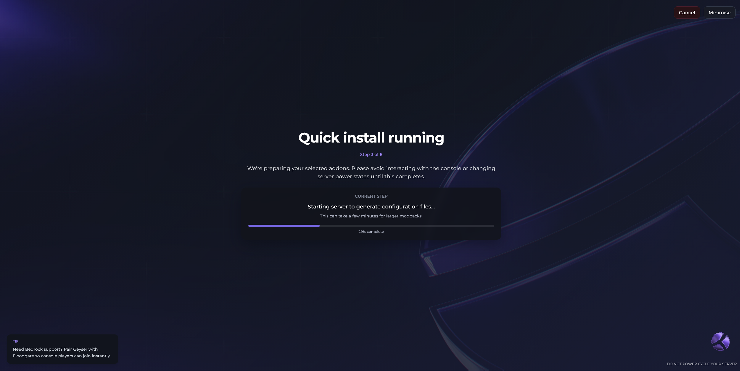 After, you'll see a Popup appear, giving you the steps it is completing on the Quick Setup.