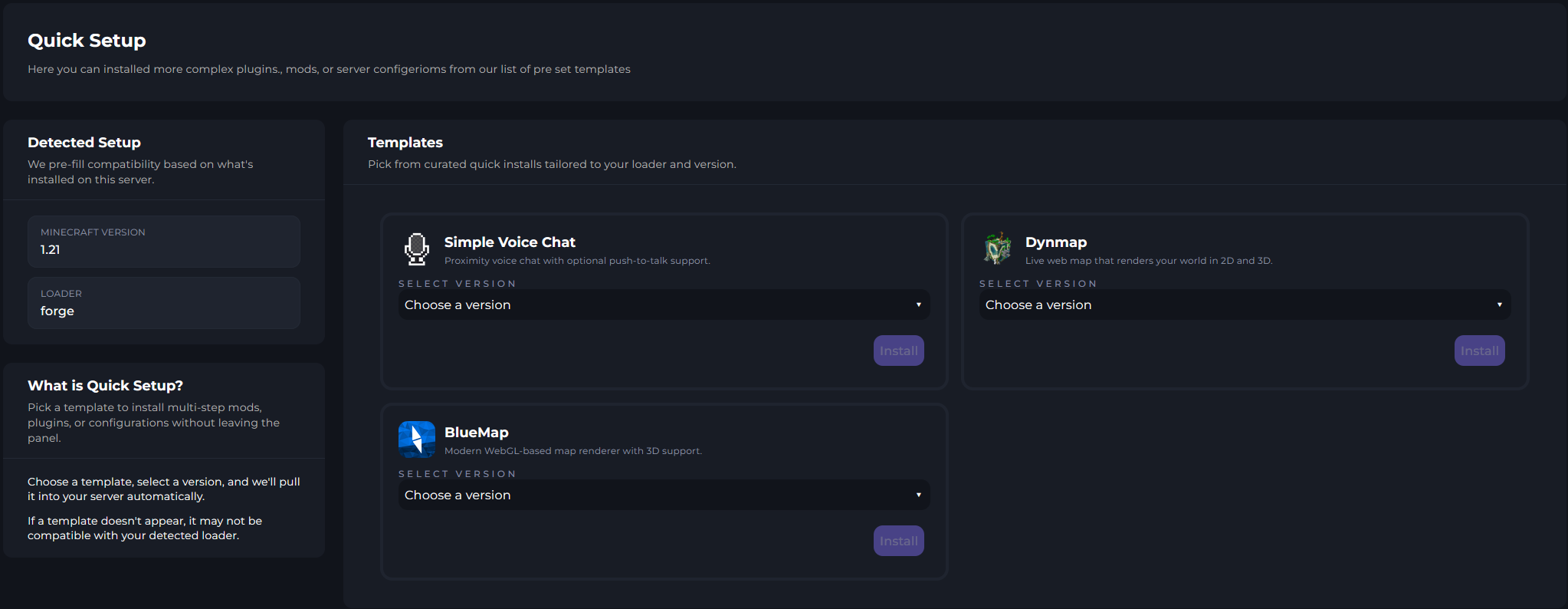 From there, you'll see a variety of Mods or Plugins that you can use to Quick Install on your server.