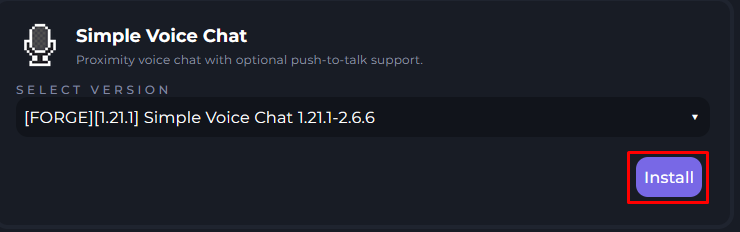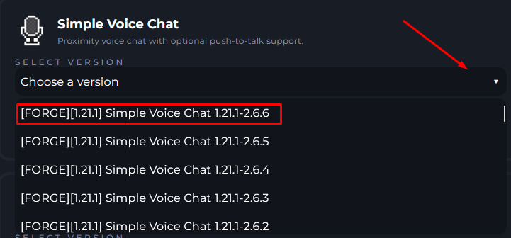 You will want to select the Mod or Plugin & the version you wish to use.