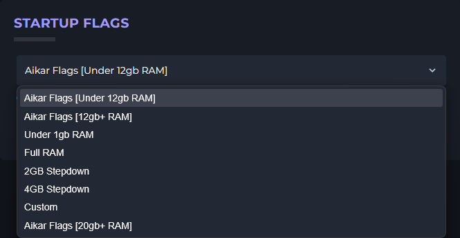 Here is where you can set your preferred startup flags for your Minecraft Server, if you are unsure what Flags to use, you can reference our guide here
