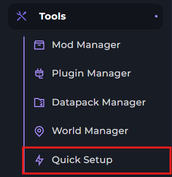 Here, the menu will show you what version of Minecraft your server is running, as well as the loader. For this example, our server is running on Spigot for Minecraft 1.21.11.