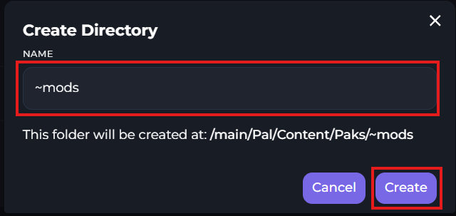 In the Paks folder, you may or may not see a "~mods" folder. If the folder isn't there, you'll need to create it. You can create the folder by clicking the "Create folder" button on the top right.