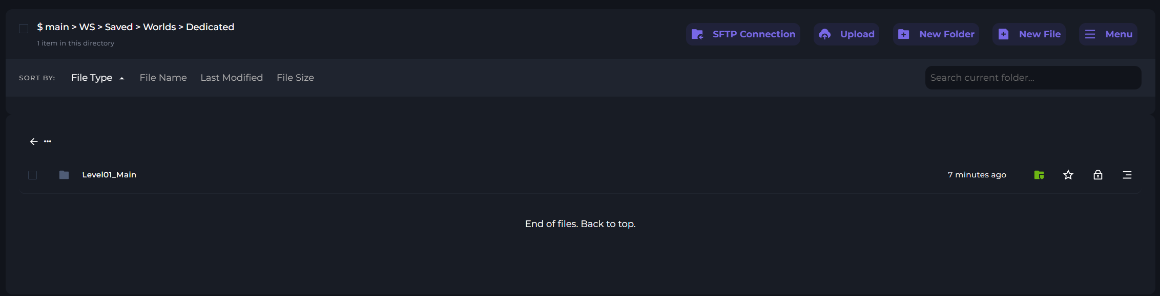 In your file manager, go to the following file directory. Here, you'll find the world folder upload location. You may see an existing world folder, so you'll need to replace it with yours.