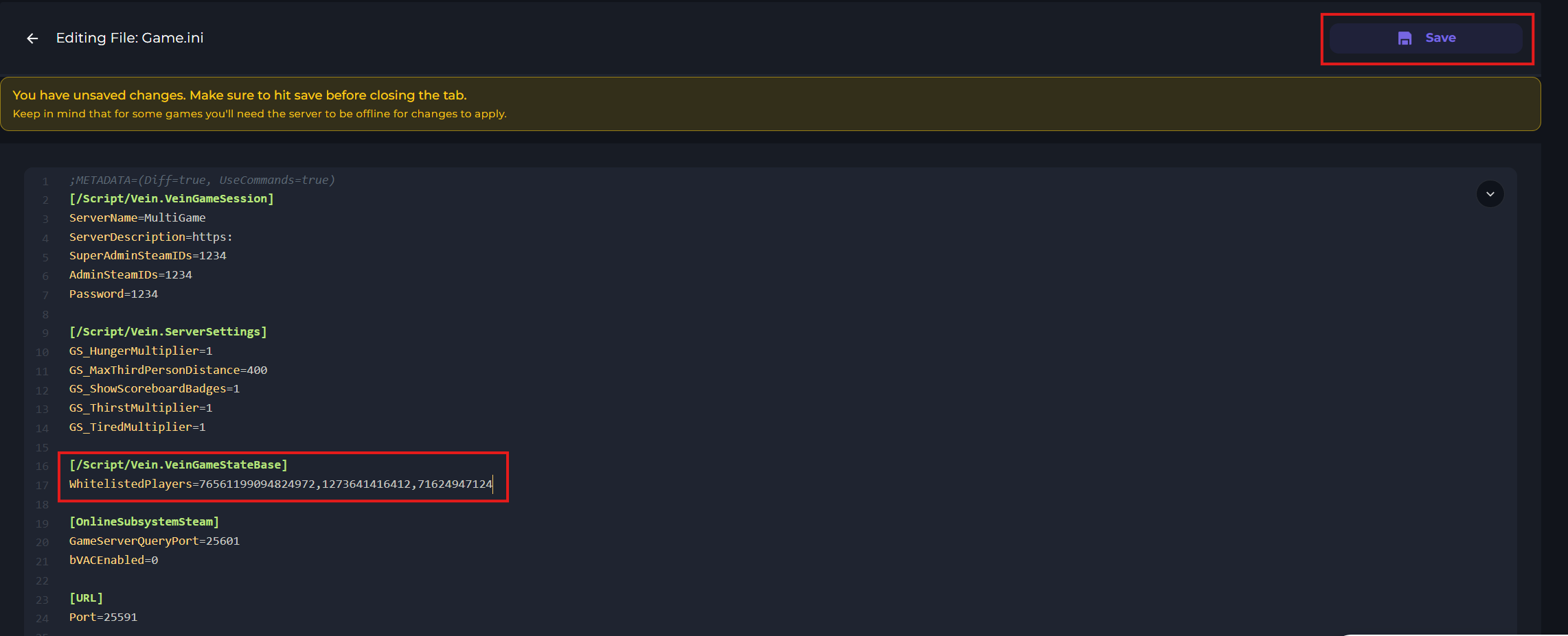 In the game.ini file, you'll see a line of text to add players to your whilelist. You'd need to input steam64ID. You can find out how to find a steam64ID on this guide.