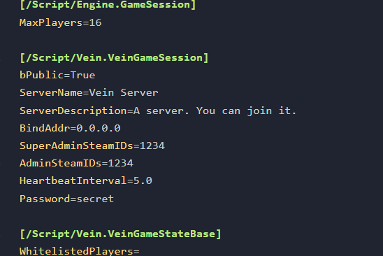 Navgaite to Vein/Saved/Config/LinuxServer/Game.ini