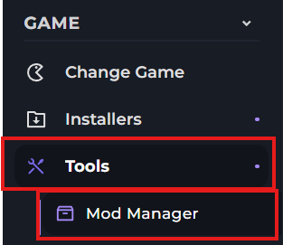 Click "Tools", then "Mod Manager" on the left side of the panel.