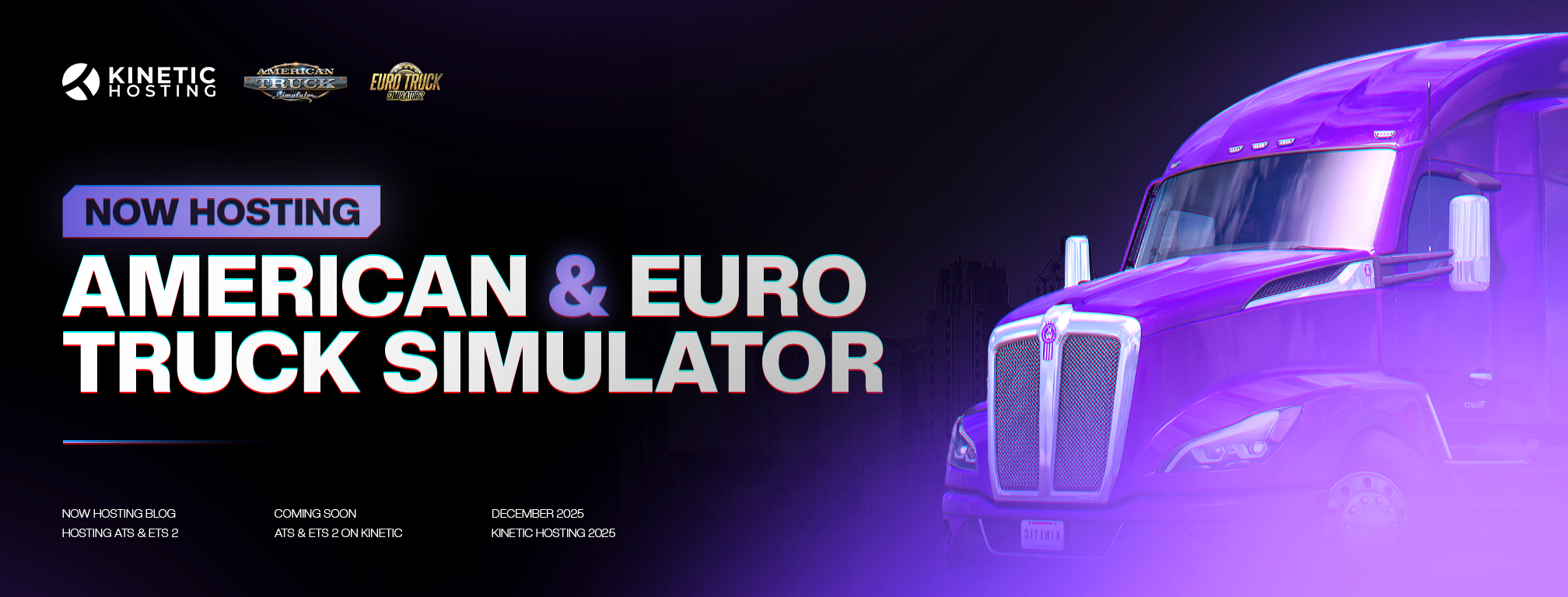 American Truck Simulator and Euro Truck Simulator Server hosting is now available at Kinetic Hosting! With the cheapest pricing, full mod support and 24/7, no AI, human support.