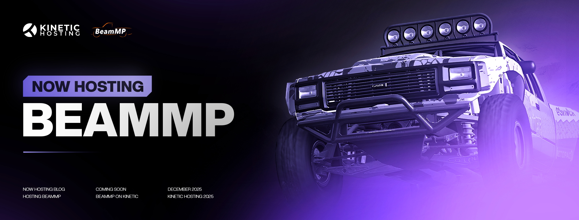 BeamMp Server hosting is now available at Kinetic Hosting! With the cheapest pricing, full mod support and 24/7, no AI, human support. Get a server today!