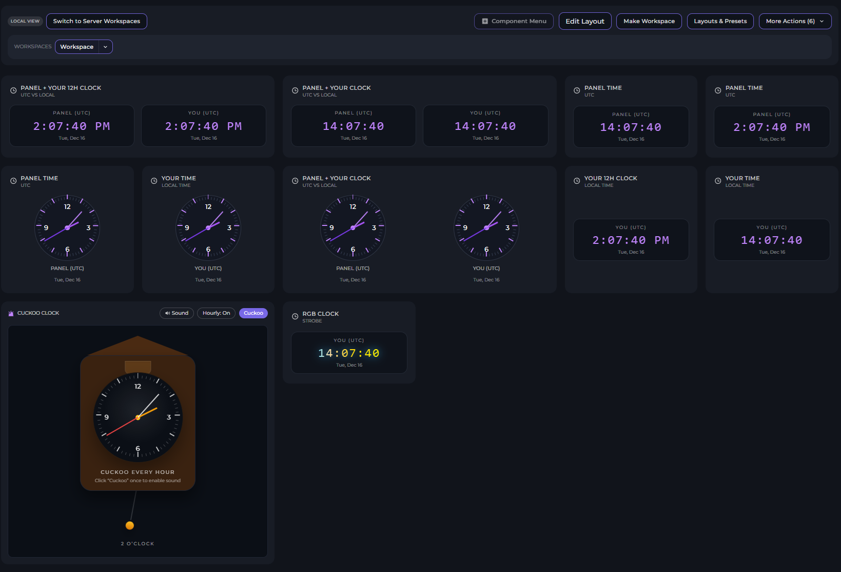 This is the “Clocks” Preset, it allows you to see all of the clock options we offer, this is another jokey workspace.